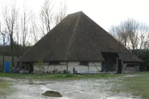 Construite au XVIe siècle, cette grange-étable présente un type particulier de charpente, dénommée charpente pyramidale,...