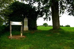 Cette stèle en marbre blanc surmontée d'une croix est l'un des rares vestiges du champ de bataille de 1870 à porter une...