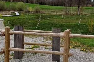 Zone humide aménagée pour recevoir du public (cheminement, tables, bancs)