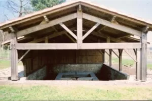 Lavoir à 3 bacs, il était alimenté par pompage sur une source. Les lavandières s’y tenaient debout. Il a été entièrement...