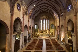 Bel exemple du style gothique languedocien à large nef (20,25 m) et voûte imposante (23,5m). Clocher octogonal de 54 mè...
