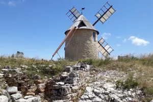 Ce moulin à vent du XVII e siècle, restauré en 2017, produit les Farines du Méjean, en coopération avec les agriculteurs...