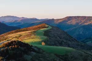 En plus d'une vue imprenable sur la corniche des Cévennes, le champ vert éclatant du Pompidou trace toute la perspective...