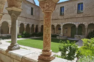 Visite du cloître roman (polychromie de marbres), de l'église avec ses nombreux retables et son célèbre linteau (1019-...